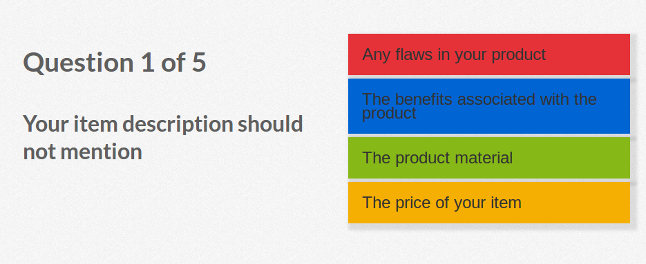 This game asks you very relevant questions when it comes to operating on eBay and tests how much you really know about various rules and regulations. In order to do well in this game, you should read all the eBay India FAQs well.