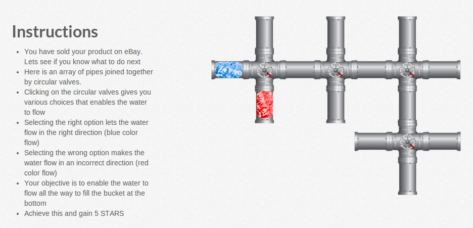 Managing orders can be a complex process when you are new. This order management game is designed to ease you into the process. This is a pipeline game where you have various choices to make the game progress further. If you don’t choose the right options the game will end. This is represented by water flowing through the pipeline. You are tasked to keep the water running in the right direction by answering the questions correctly.